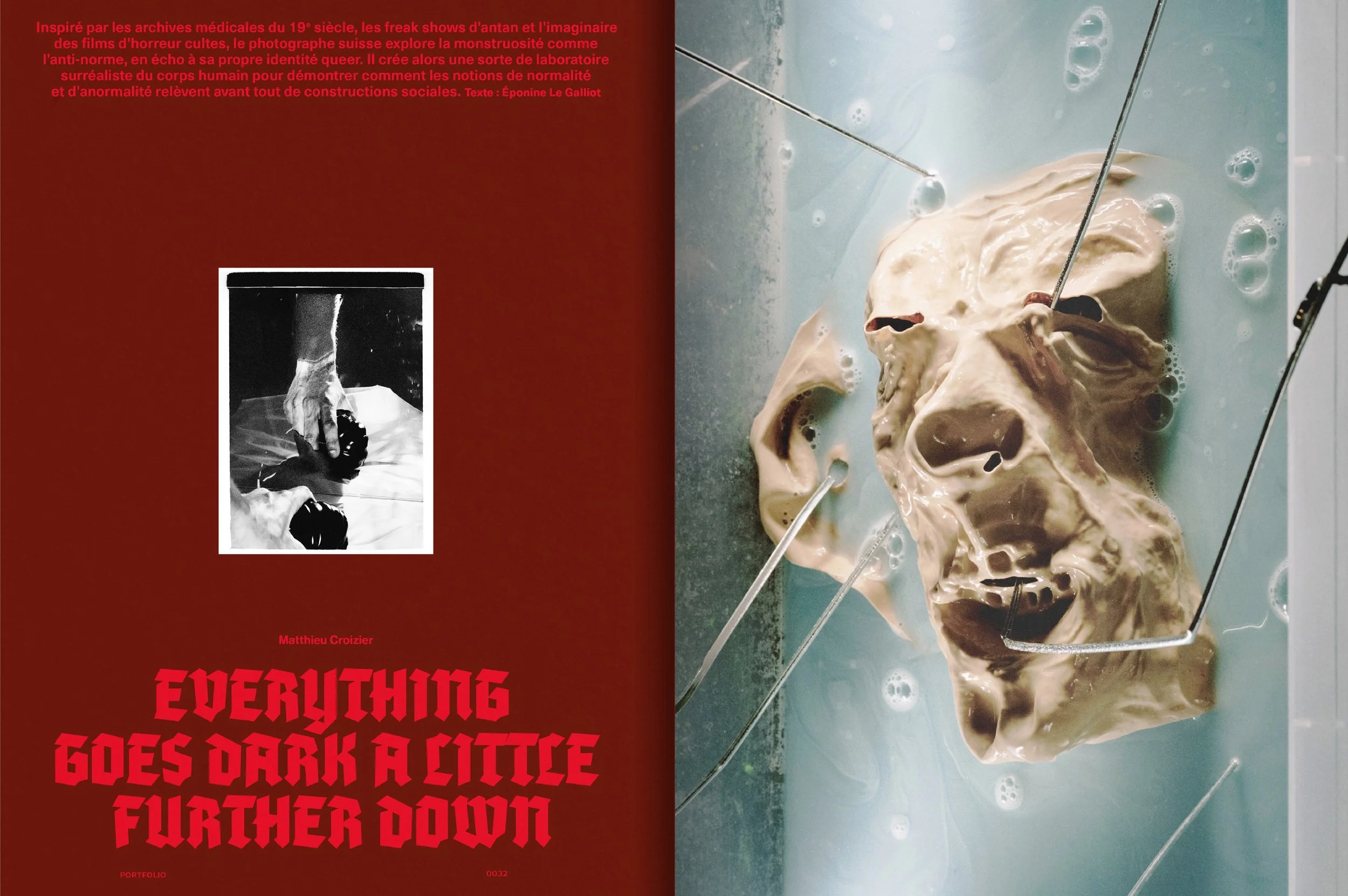 Inspiré par les archives médicales du 19ᵉ siècle, les freak shows d'antan et l'imaginaire des films d'horreur cultes, le photographe suisse explore la monstruosité comme l’anti-norme, en écho à sa propre identité queer. Il crée alors une sorte de laboratoire surréaliste du corps humain pour démontrer comment les notions de normalité et d'anormalité relèvent avant tout de constructions sociales.